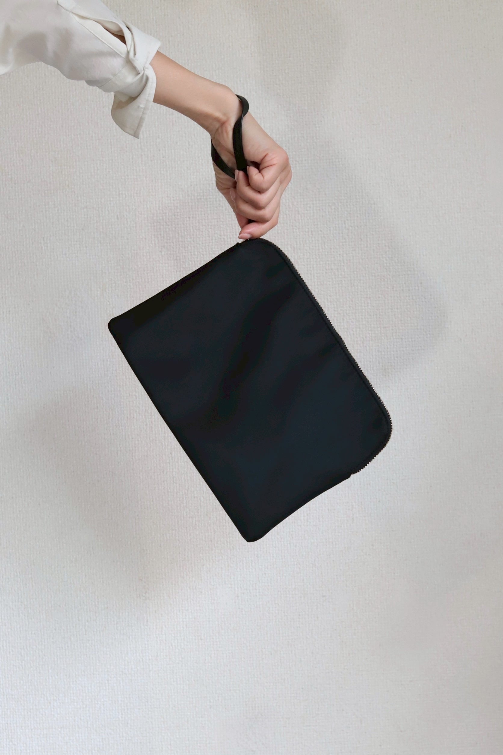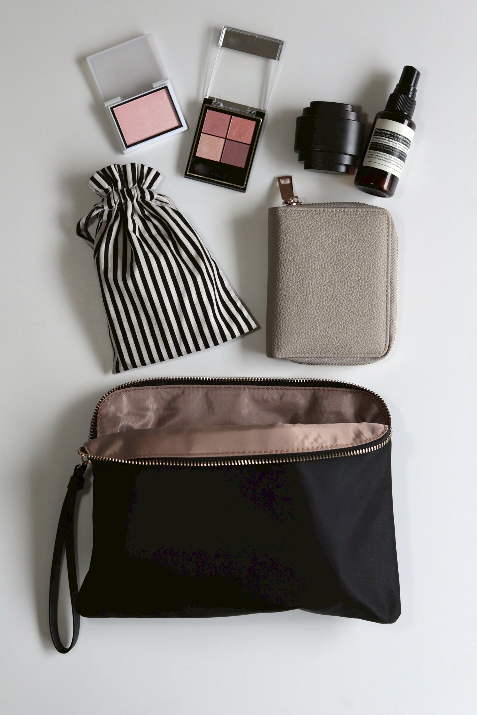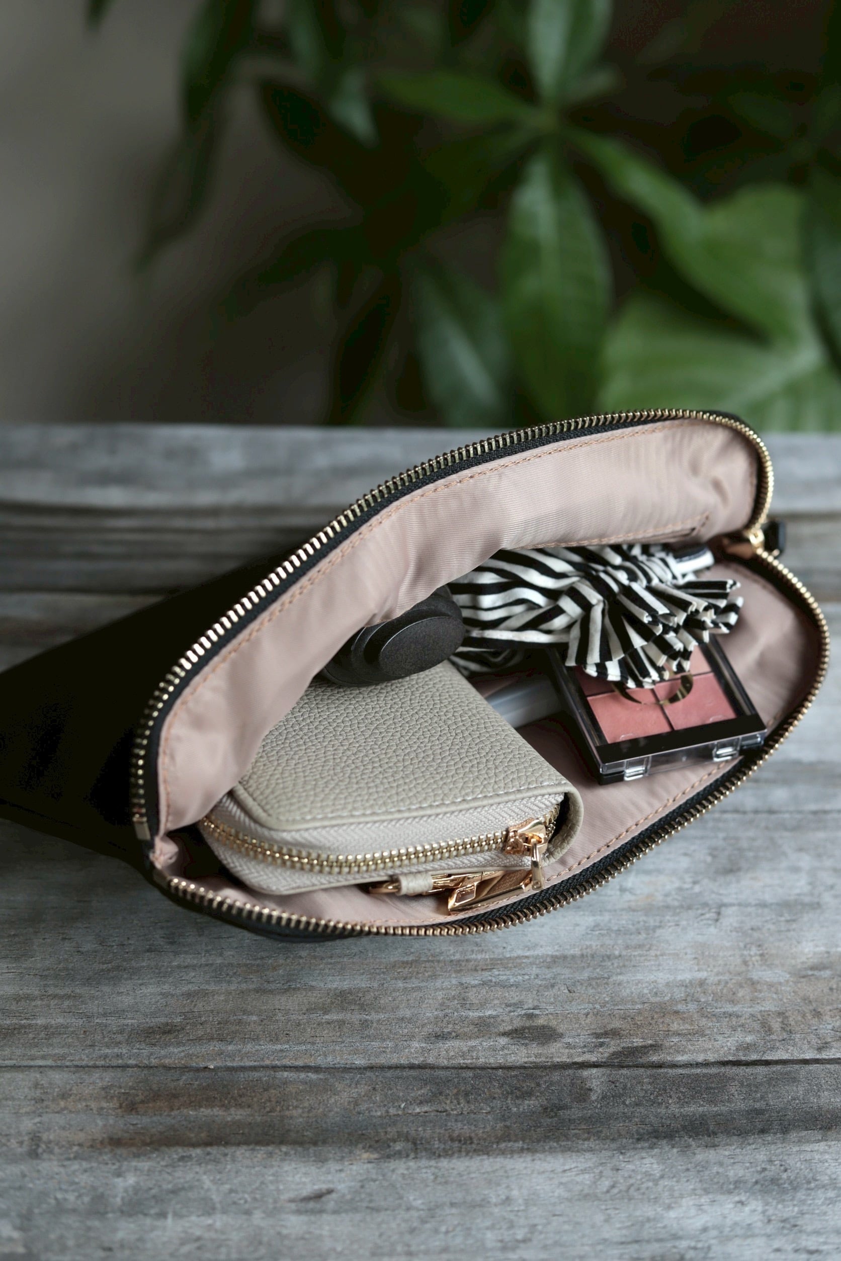 エブリデイポーチ(外側ブラック、内側ベージュ、持ち手ブラック、金具ゴールド)