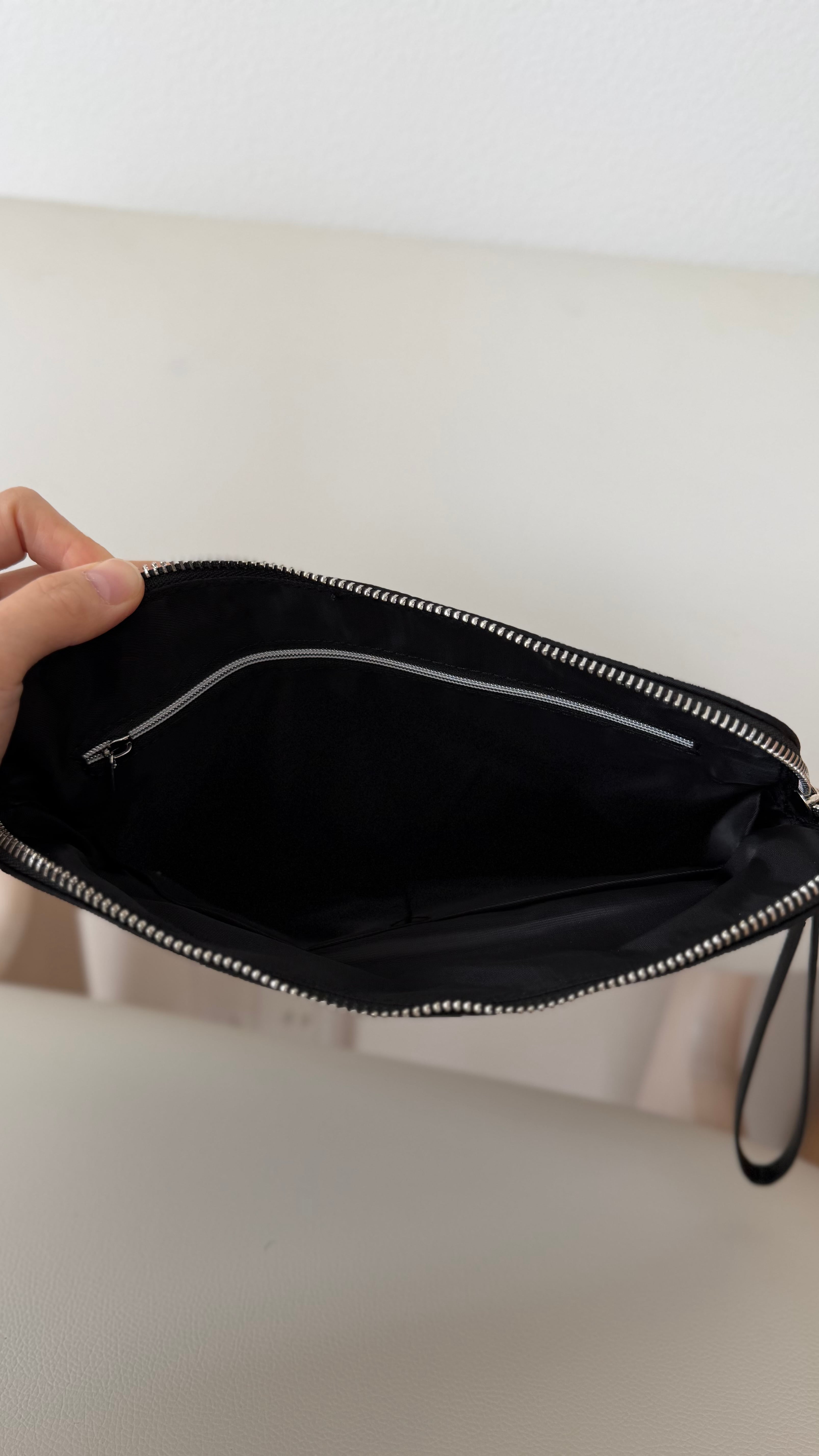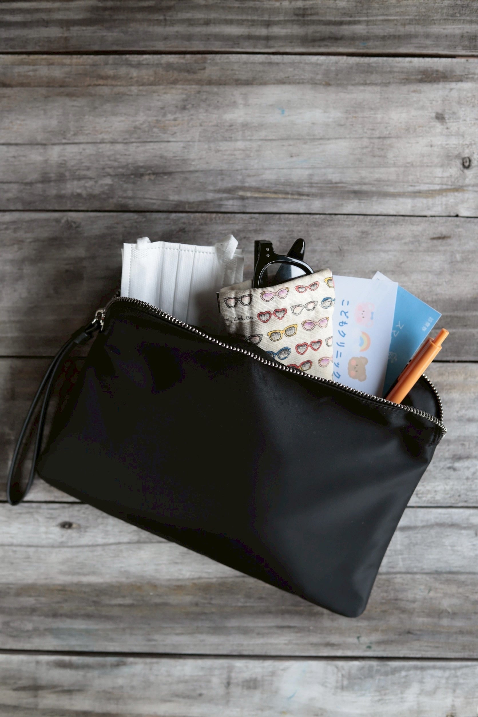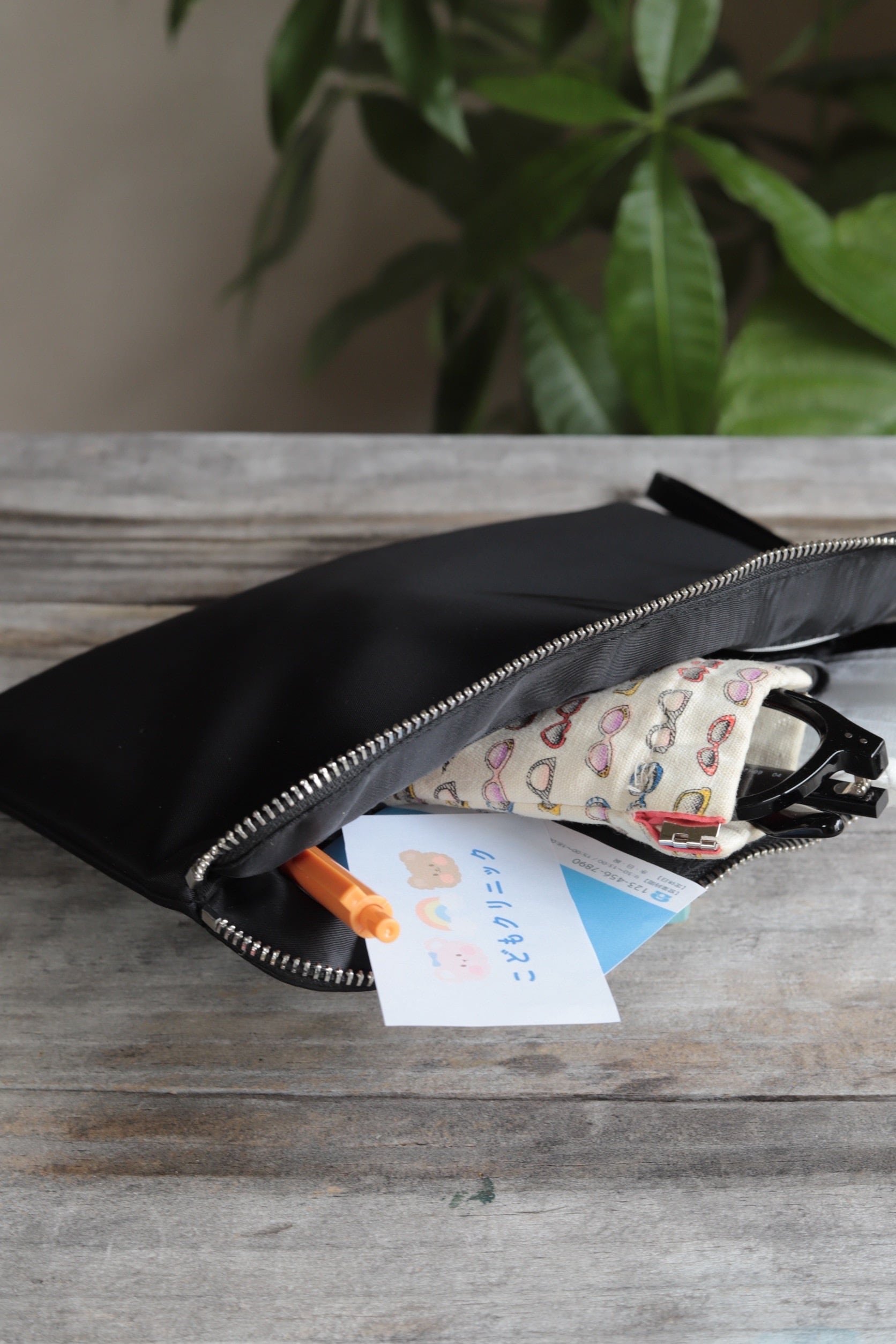 エブリデイポーチ(外側ブラック、内側ブラック、持ち手ブラック、金具シルバー)